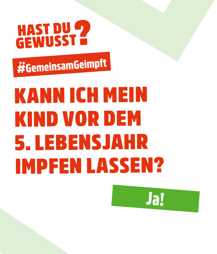 Für Kinder ab dem vollendeten 6. Lebensmonat und bis zum vollendeten 5. Lebensjahr werden die ersten beiden Impfungen im Abstand von drei Wochen verabreicht. Die dritte Impfung ist frühestens acht Wochen nach der zweiten Impfung empfohlen.